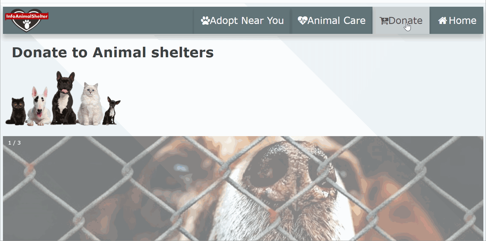 CSS, HTML5 and Javascript was used to create an website that promotes donating to various Animal Shelters. It also has an embedde websites.